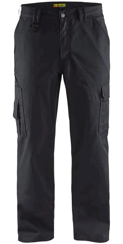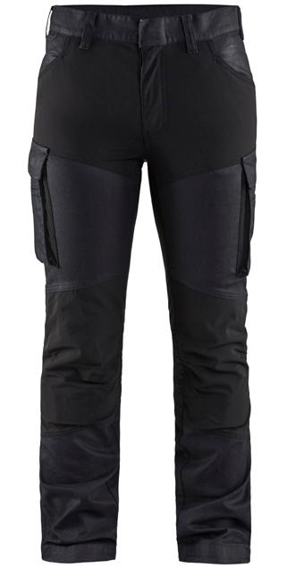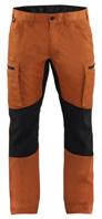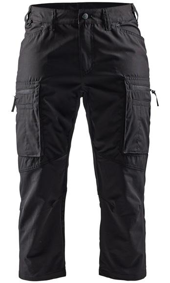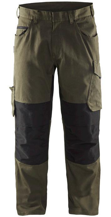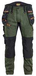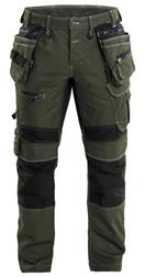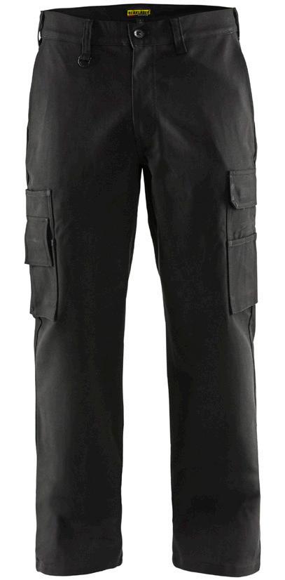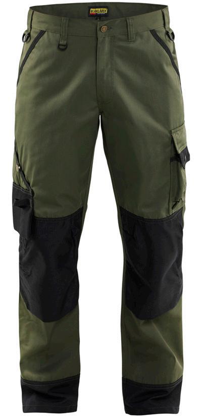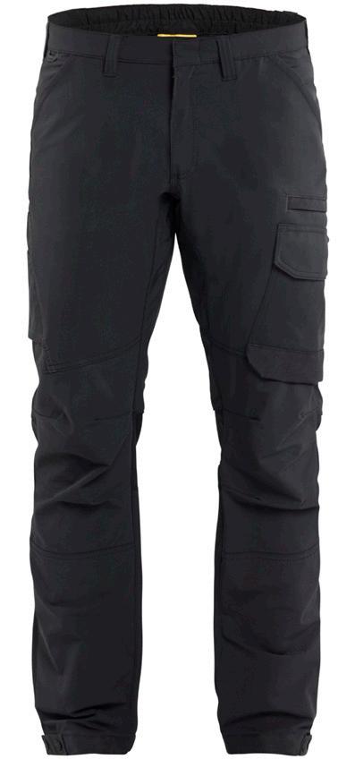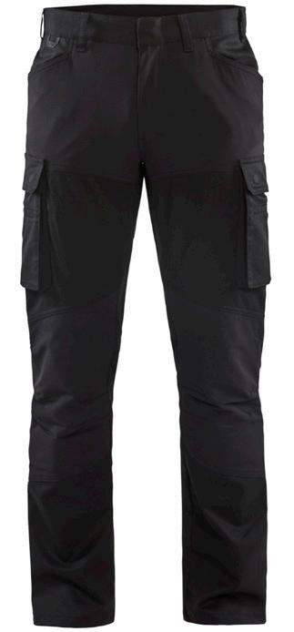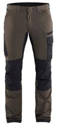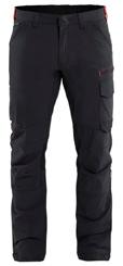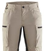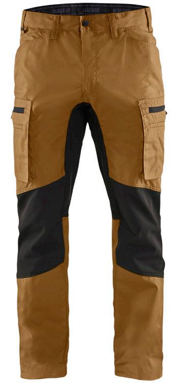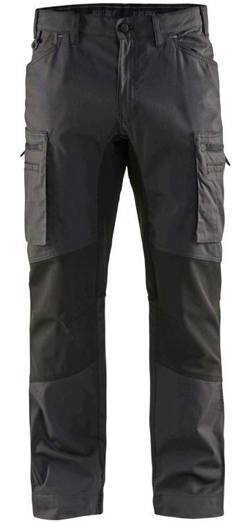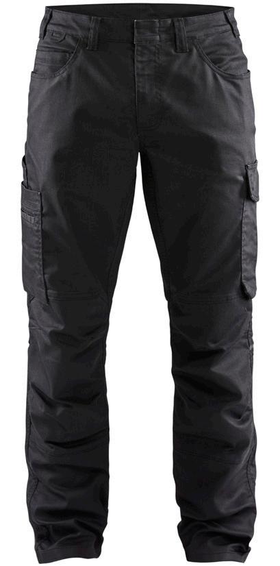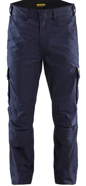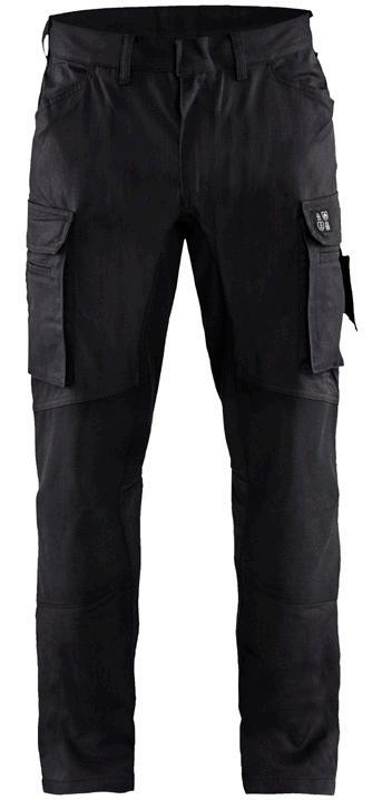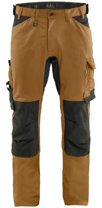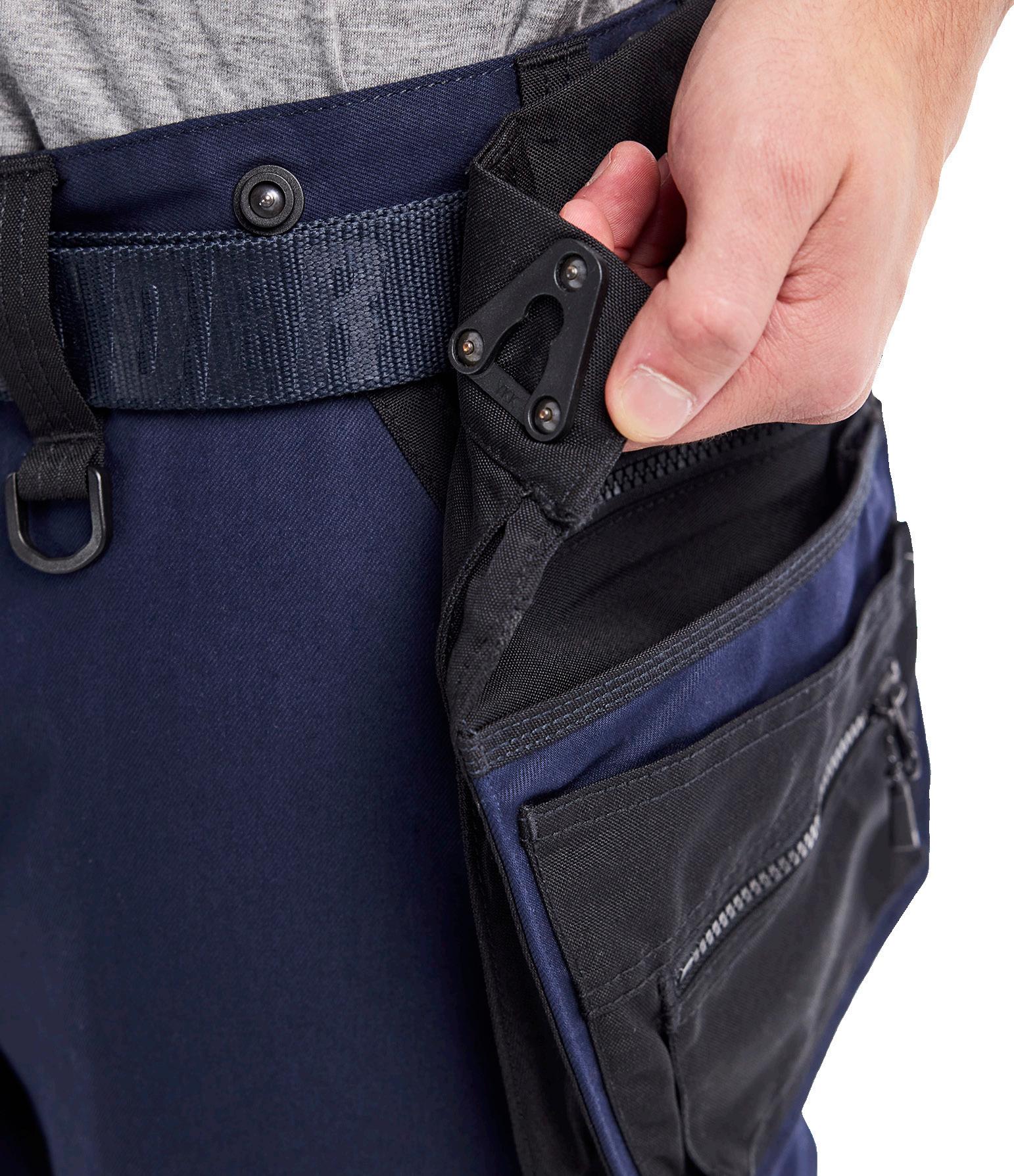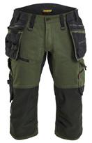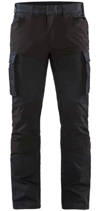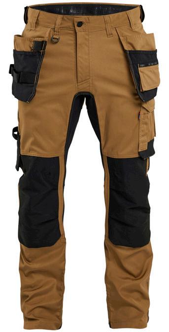 FUNKTIONALITET: 2-vejs stretch, Stretchpaneler skridt, læg og knælommer DETALJER: Gylp med knapper, To bæltestropper på siderne med en knap til hammerholder, en bæltestrop med D-ring på forsiden. Bred bæltestrop bagerst, Metalknapper, Knivholdere med knap, D-ring taljen, Forstærket syning skridtet, 3-nålssøm på indvendige