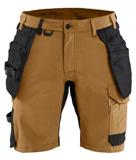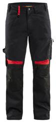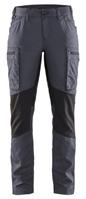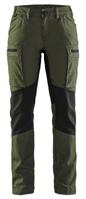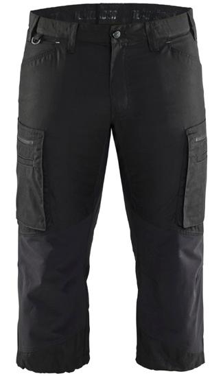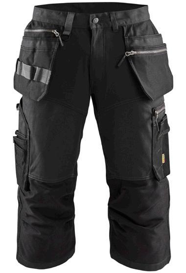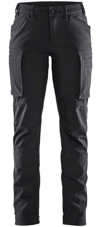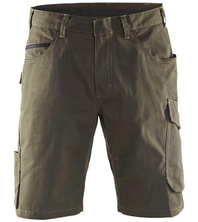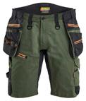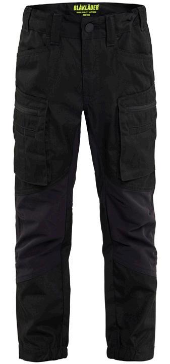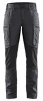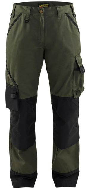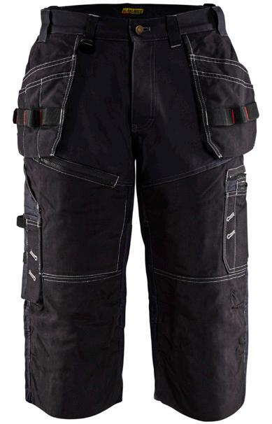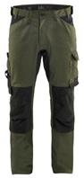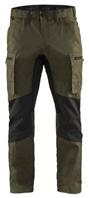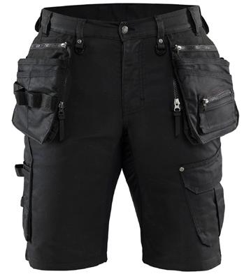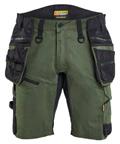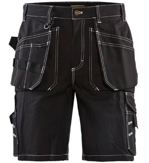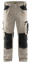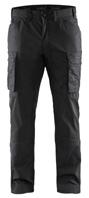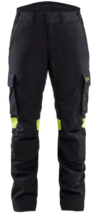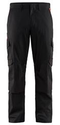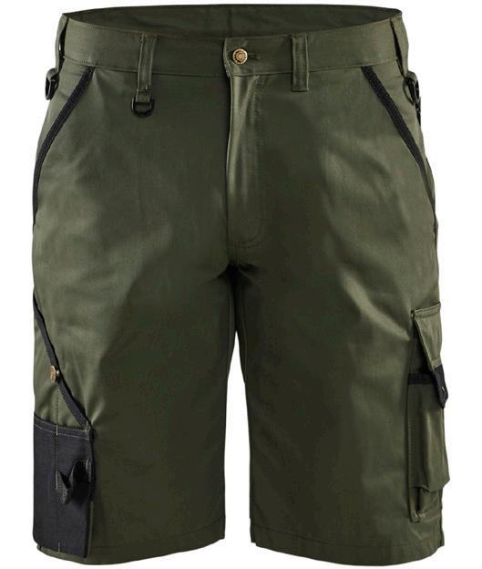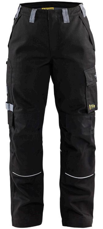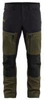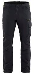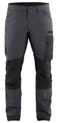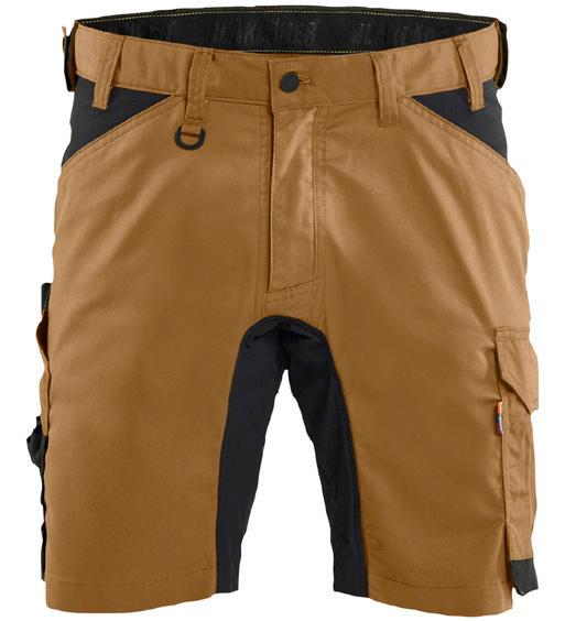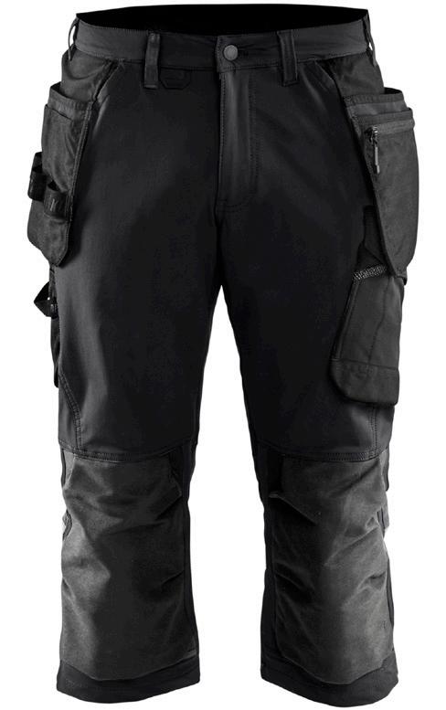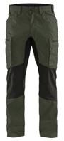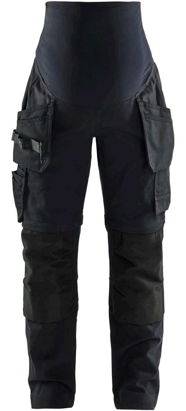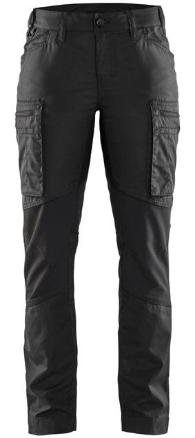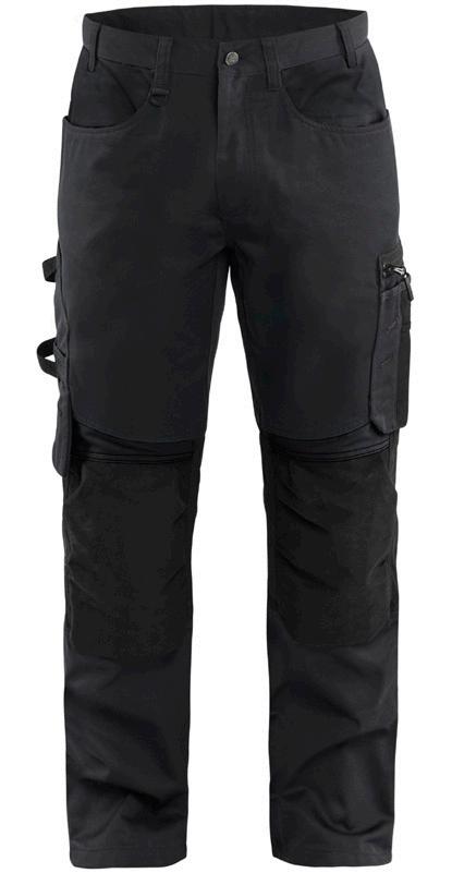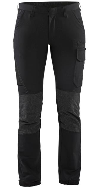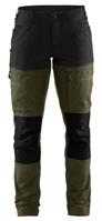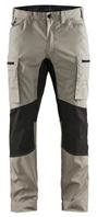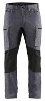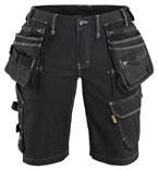 FUNKTIONALITET: 2-vejs stretch, Stretchpaneler skridt, læg og knælommer DETALJER: Gylp med knapper, To bæltestropper på siderne med en knap til hammerholder, en bæltestrop med D-ring på forsiden. Bred bæltestrop bagerst, Metalknapper, Knivholdere med knap, D-ring taljen, Forstærket syning skridtet, 3-nålssøm på indvendige