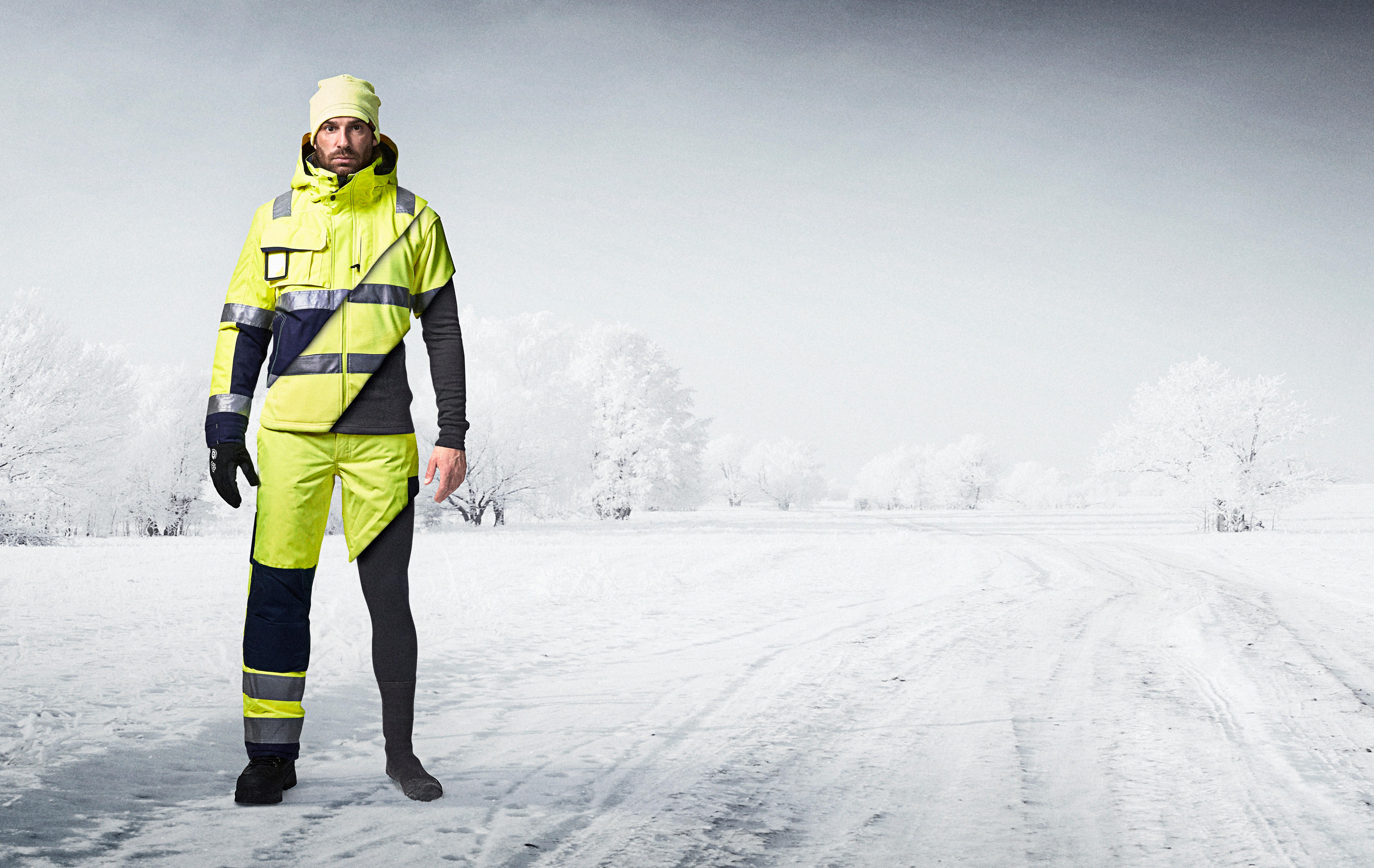Sikkerhedsbeklædning certificeret henhold til EN ISO 20471 forbedrer brugerens synlighed under alle lysforhold om dagen og fra belysning af bilers forlygter i mørket.
