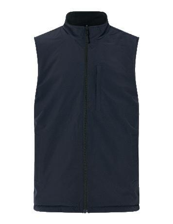 Reversible vest that is navy on one side, black on other side