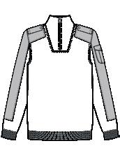 Double layered material at cuffs, neckline and hem