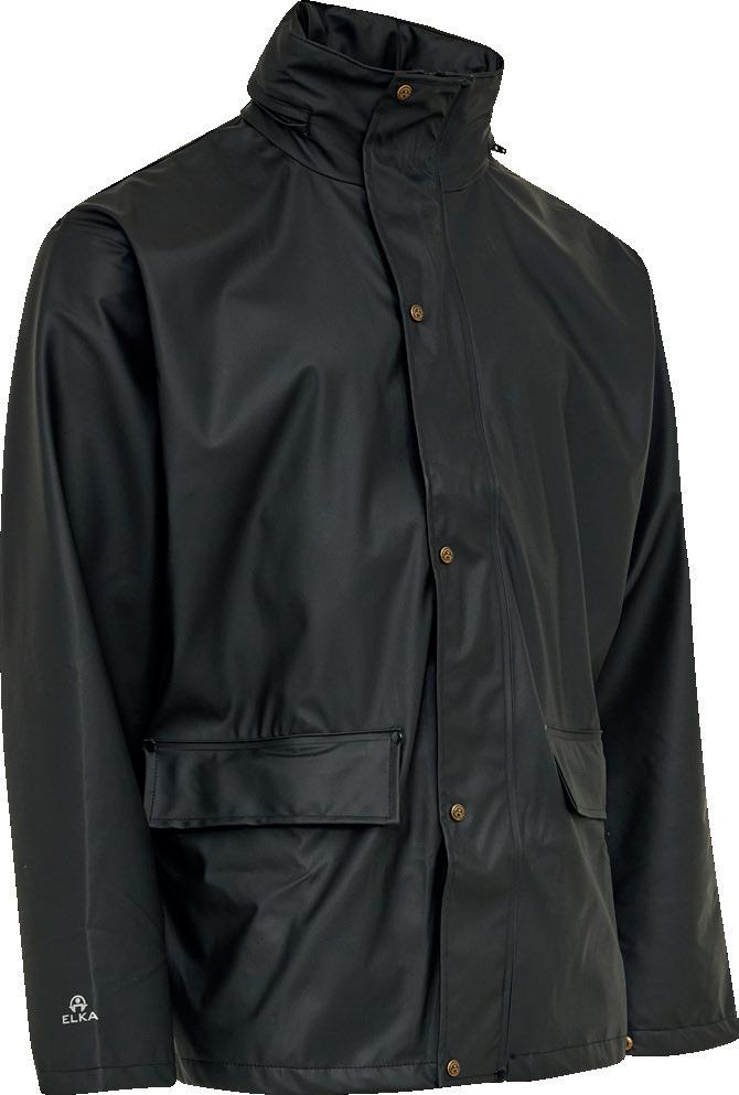 Wear the ELKA Elements rain gear and experience the sensation of being well-protected. The fabric combines PU and PVC, and the items withstand a water column pressure of 8,000 mm.
