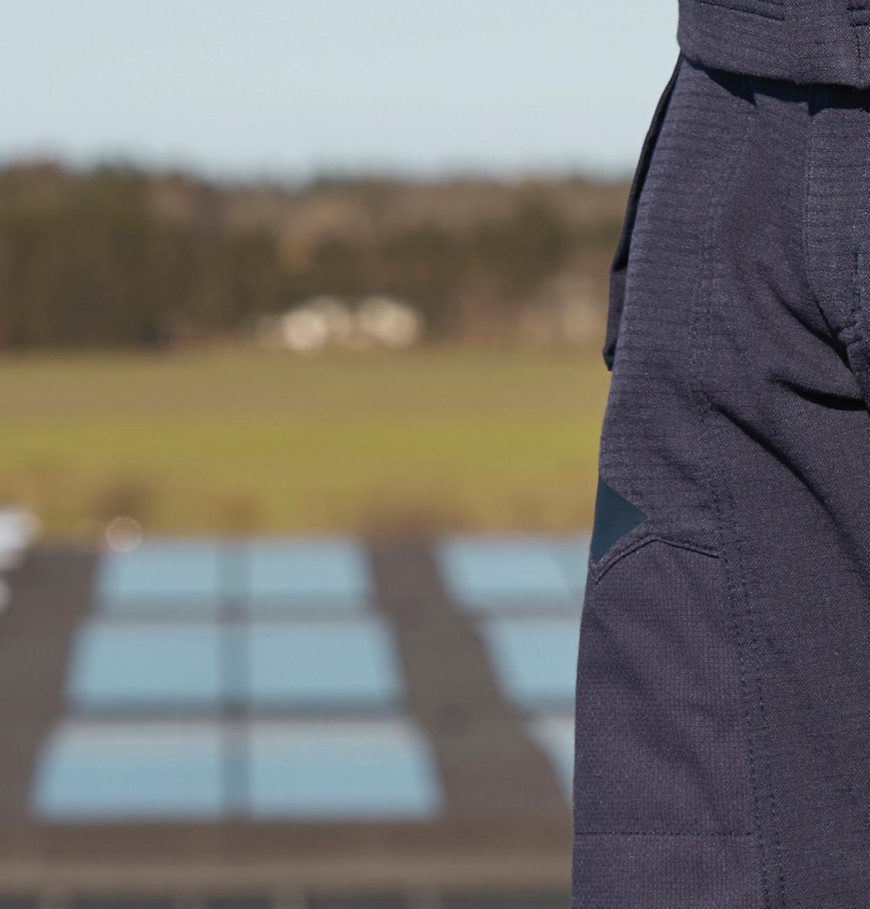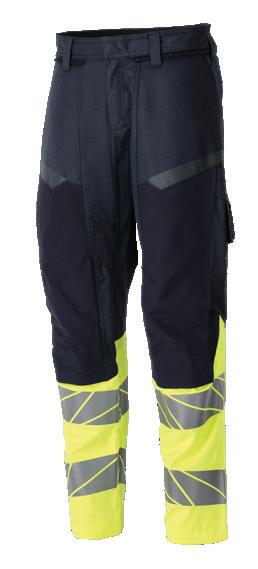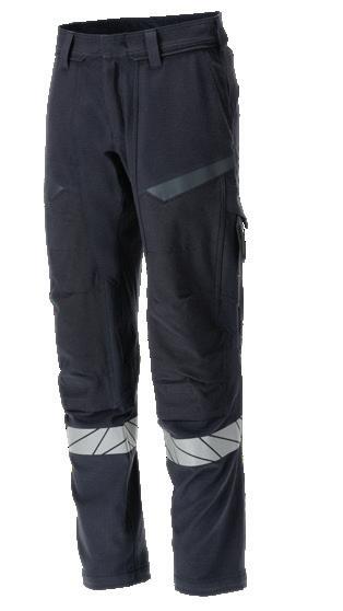 Alle bukser, overalls og kedeldragter i MASCOT® ACCELERATE MULTISAFE har firevejs stretch materiale under knælommerne, uanset hvilket hovedmateriale bukserne er fremstillet af. Det bidrager til optimal komfort, når I fx arbejder i knælende positioner eller andre positioner, hvor benet bøjes, og stoffet ellers ville stramme bag knæet.