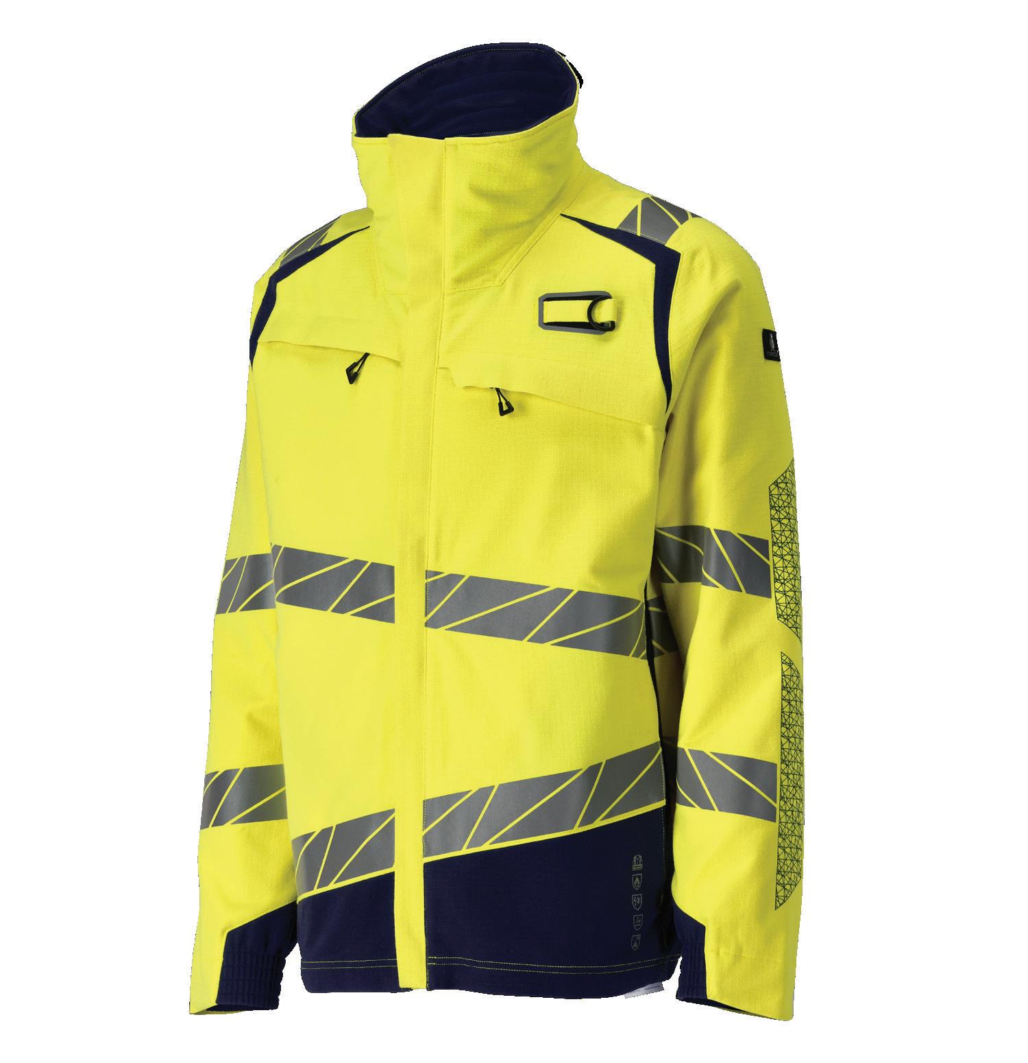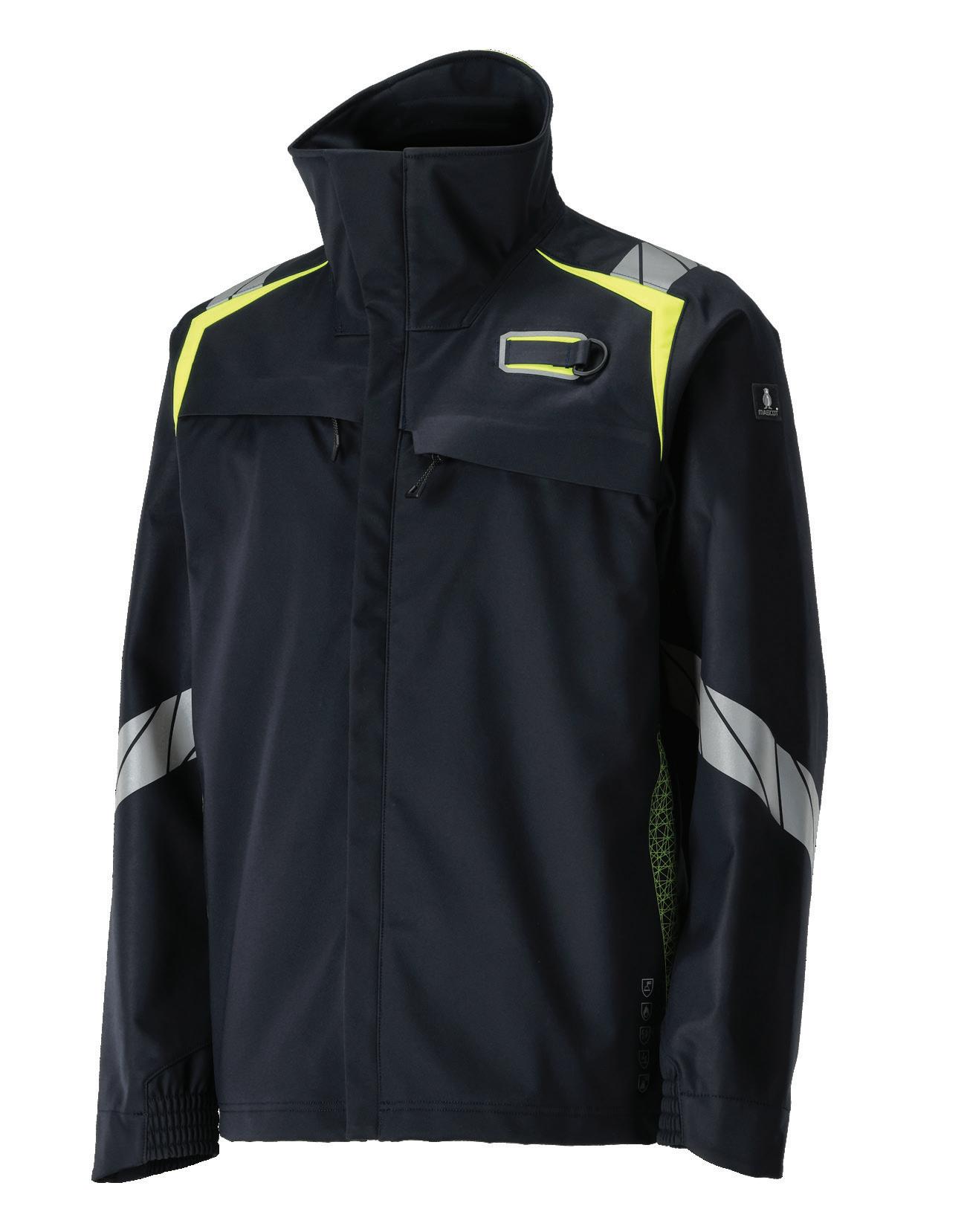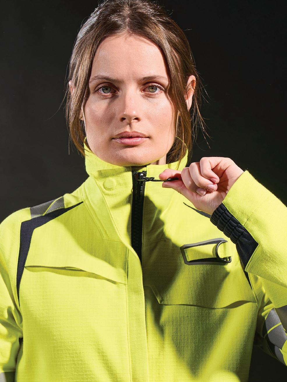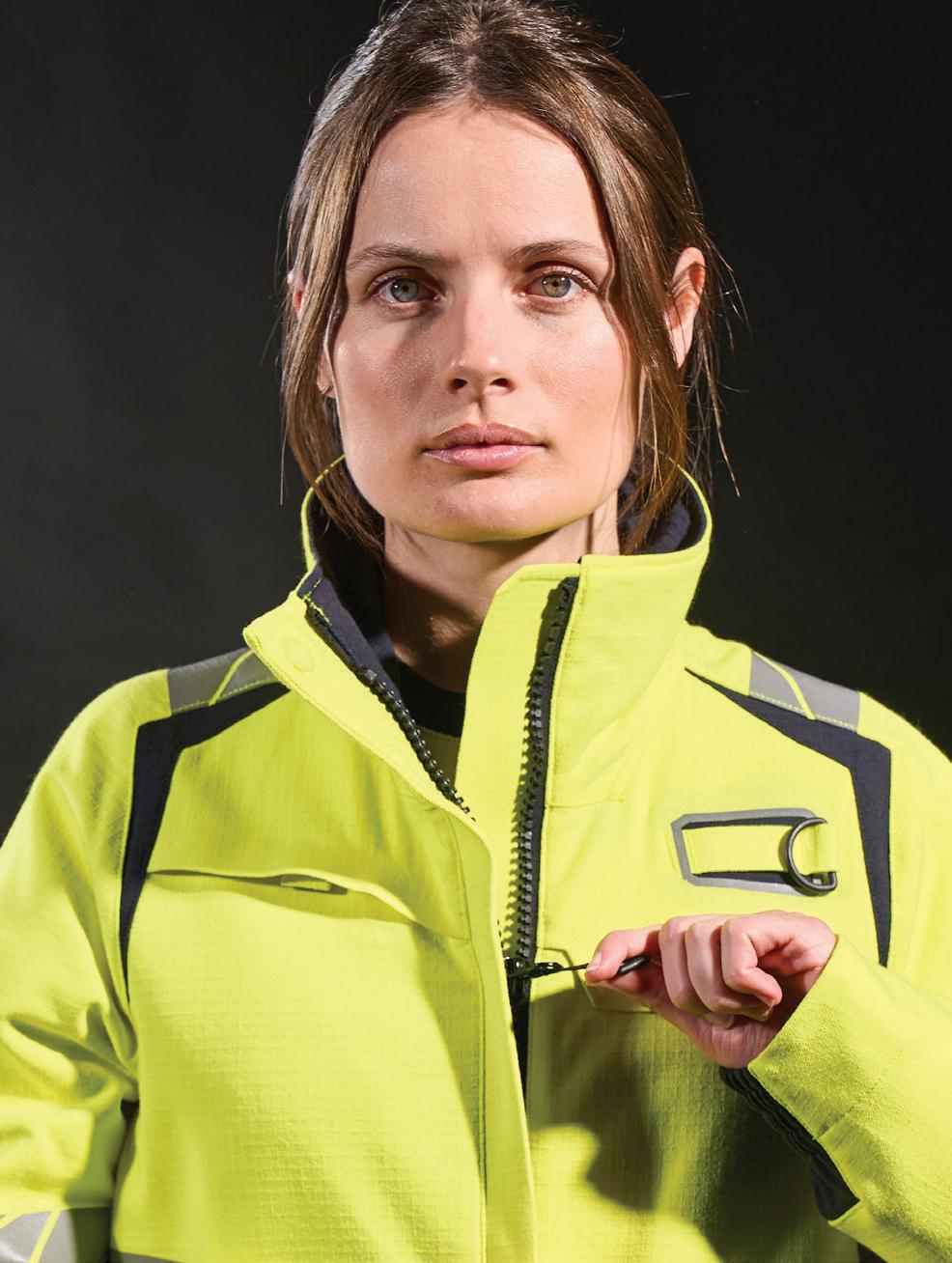 Sikkerheden er i top i MASCOT® ACCELERATE MULTISAFE. Derfor har alle jakker isat lynlåse med en indbygget sikkerhedsforanstaltning, der giver medarbejderen mulighed for også at åbne lynlåsen fra toppen, så man hurtigt kan komme ud af jakken i en faresituation.