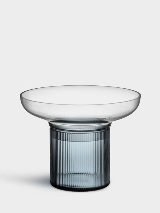 Centrifuged glass is significant to the history of Orrefors. With Pond, Ingegerd Råman has picked up this on tradition but with her own unique approach. Centrifuged glass traditionally has a circular shape, but here it is oval instead, while remaining as thin and strong as ever. When the dishes in different sizes are stacked on top of another, an image appears – one reminiscent of rings on the water after a pebble is cast. The collection was launched in 2021.