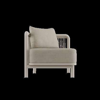 The sofa is made from durable, high quality materials that can withstand life and all that comes with it. The series features a powder-coated aluminum frame and is upholstered with a thick-woven olefin fabric from Sunproof, which is UV-resistant, quick-drying, and resistant to mold. The fabric is both waterproof and UV-resistant. This allows you to leave the lounge sofa outside all year round - even in snow and rain. Furthermore, the cushions are filled with a special Quick-dry foam, which means the sofa is already dry by the time you’re ready to use it.
