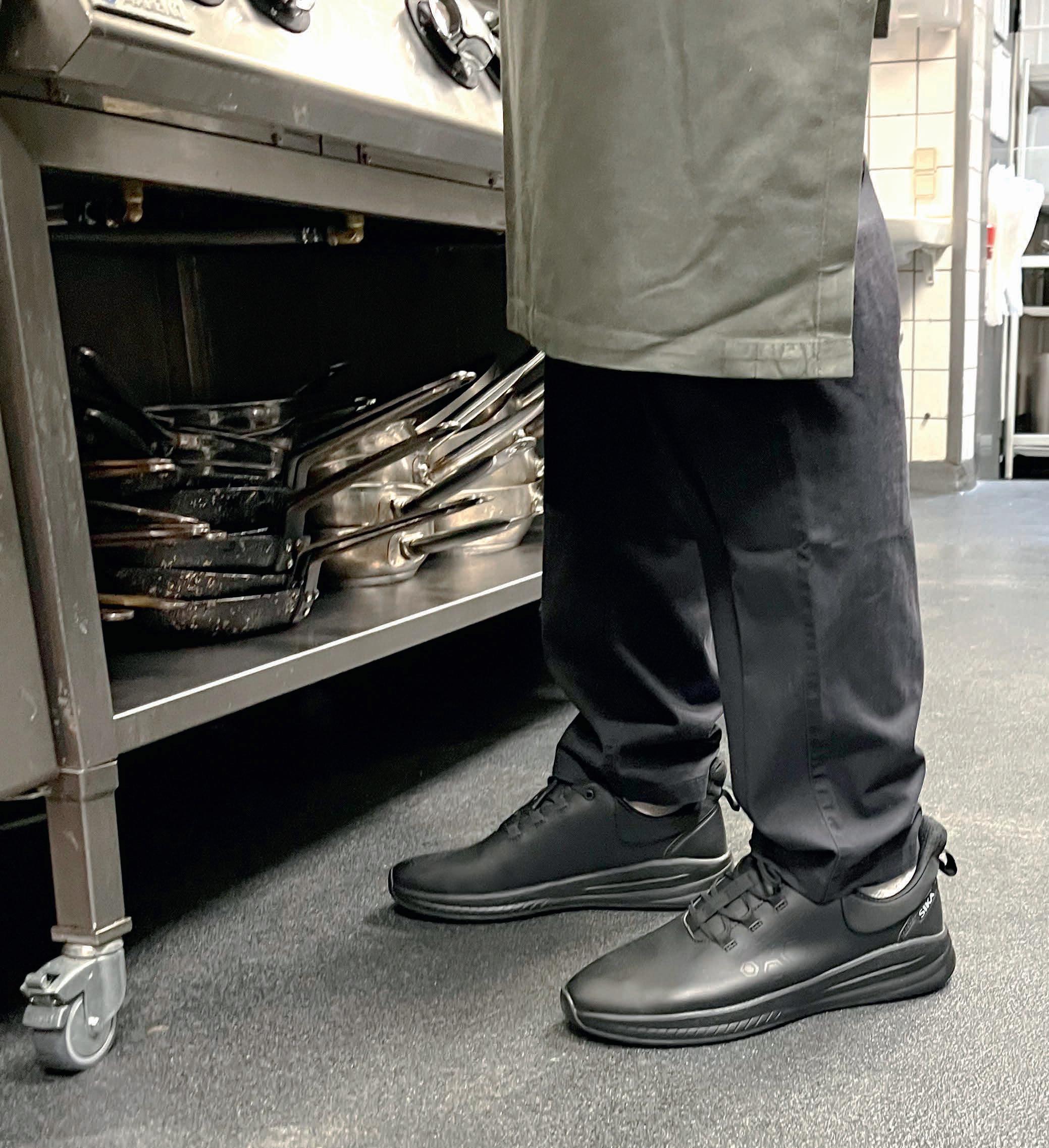 Jeg synes personligt, at Sika Energy er en super god sko til kokken. Skoen står fast, selv på et fedtet gulv og den har et flot og enkelt design. Komforten er virkelig god.