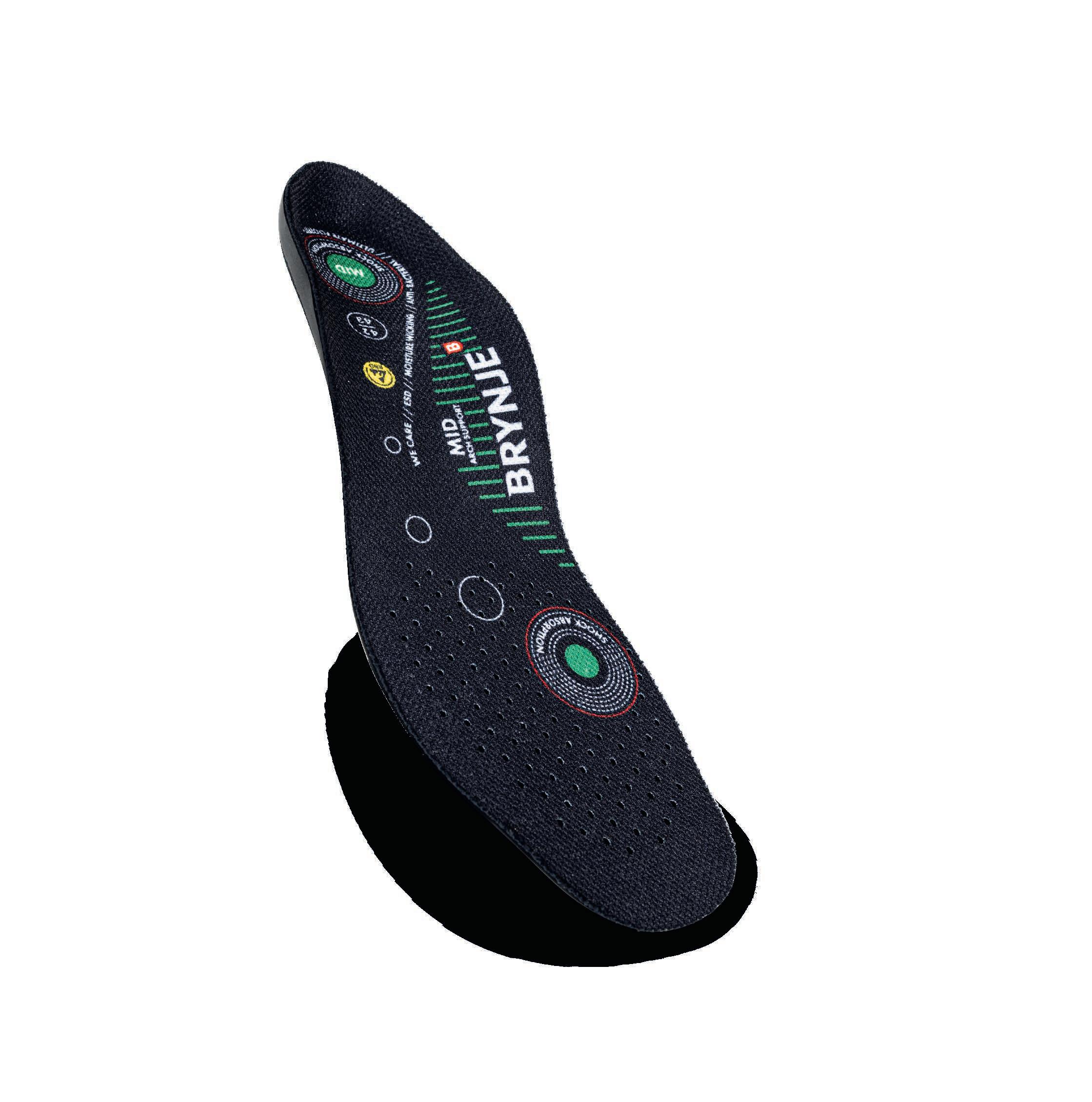Eksklusive indlægssåler med langtidsholdbar svangstøtte. Den ergonomiske opbygning er udviklet til ekstraordinær stødabsorbering, komfort og støtte til fødder med behov for let, medium eller høj svangstøtte. Den integrerede ArchCTRL-teknologi giver effektiv og holdbar støtte til svangen, mens sålens fleksible struktur aflaster svangsenen. Sålen er fremstillet i åndbare, ESDgodkendte materialer – med ansvarlige valg såsom GRS-certificeret skum og biobaserede komponenter. ESD-godkendt og PVC-fri. Sålen kan klippes til for individuel pasform. Anvend eksisterende indlægssål som skabelon. Str. 35-50.