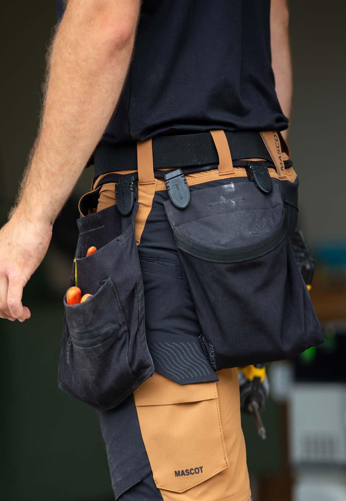 Med MASCOT® CUSTOMIZED får du unik bevægelsesfrihed og nye innovative funktioner. Tilføj hængelommer, der matcher dit fag og placér dem, hvor du vil med MASCOTs unikke Click Pocket System.