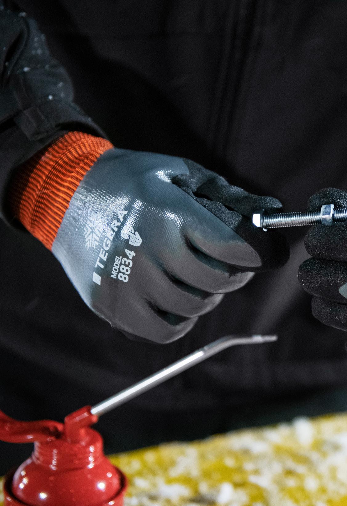 Olie- og vandafvisende håndflade, åndbar håndryg, suverænt greb i miljøer med olie og fedt