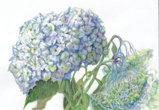 Artworks by Claudia Eoline Stewart Lane, Illinois Society. ABOVE AND PAGES 19 & 23: The NSCDA Badge, colored pencil on film. OPPOSITE : Hydrangeas, watercolor on paper.