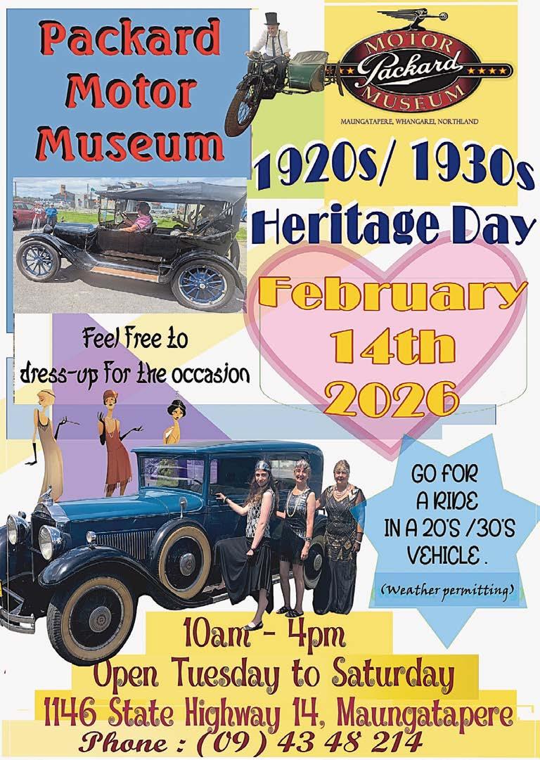 Kaipara Heritage Machinery Club — Open 7 days. Something to interest both men and women, come and get involved. Phone 021 106 3635 or 027 472 1269. Kaipara Bootscooters (Beginner line dancing classes) — Every Monday 5.30pm to 7.30pm and Thursday 10am to noon. First hour is beginner and second hour is higher beginner. Dalmation Hall, Normanby St, Dargaville. Contact Donna 021 729 955.