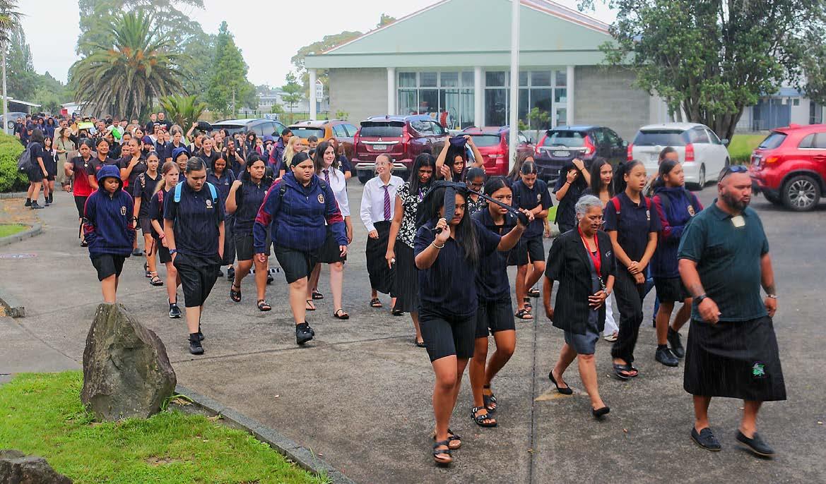 p A new intake of students braved unseasonal rain as they headed for a welcome pōwhiri hosted by their seniors at Dargaville High School last week. With a new principal and a new year of academic, sporting and cultural achievements to look forward to, the mood was positive as friends were reunited after the summer break.