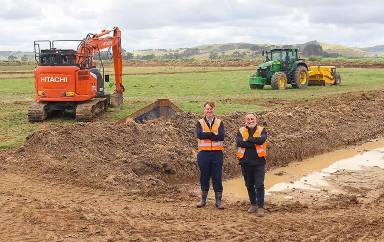 p Mayor Jonathan Larsen and deputy mayor Gordon Lambeth on-site where a major flood protection project is taking shape between Aratapu and Dargaville