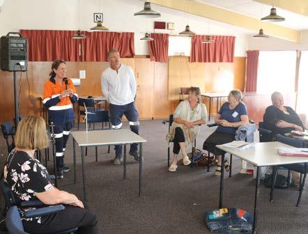 Katy Scoullar, Mercury Energy communications liaison, and Mark Bell, site manager for the Kaiwaikawe Wind Farm, spoke to a full house at the friendship club engagement, as ships carrying the first stages of the 125-metretall, 6.3-metre-wide turbine towers docked at Northport.