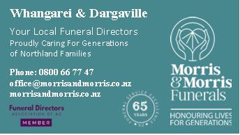 The funeral service will be held at the Baptist Community Church, 180 Victoria Street, Dargaville on Thursday 22 June 2023, at 11 am.