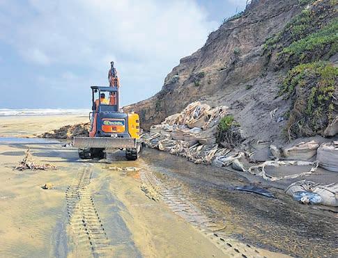 The plan being enacted was one of several options in an engineer’s report provided to the KDC and the least costly. It will see the Chases Gorge stream moved to the opposite side of the cutting. The bags will be removed, with no structure replacing them. Driving access will be retained to the beachfront.