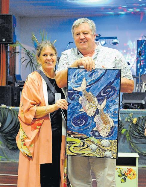 The final auction bid at Paparoa’s recent fundraiser for the Mayoral Cyclone Relief Fund was placed by Mayor Jepson himself. Thousands of dollars were raised for victims of the February weather bomb at the event, for which local artist Pat George created this mosaic piece. Loie Donaldson presented the artwork to a very grateful mayor, who commended all those involved with the evening for doing a great job.