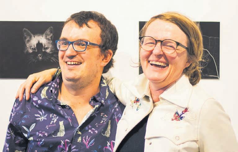 p Dargaville artist Liam Martyn Astbury was one of the featured creators at the recent Whangarei Fringe Festival, where he took up residence for the duration in the Megan Dickinson Gallery. An artist’s talk, during which he described his process, inspiration and the thought behind his works, was very well attended, and the engagement has led to other opportunities to display. Here he is pictured with his former tertiary-level arts tutor Lisa Clunie.