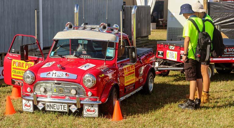 and plenty of food product samples. For the petrol heads and enthusiasts, lawn mower racing allows people of all walks of life to get involved, compete and have a lot of fun or just be a spectator. If energy flags, there’s always time to sit and just enjoy the parade riding on the Mack replica for truck fanatics of all ages; it’s a great way to get around the field days. Although technically not a truck, the converted Mini is a crowd favourite. Its powertrain is a 1,275cc four-cylinder engine (the British Leyland Mini’s original A-series motor), and it’s