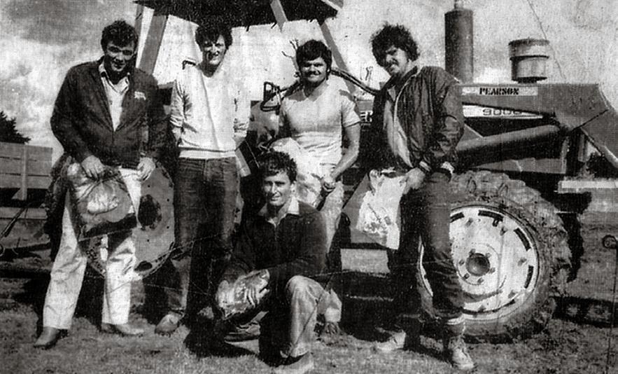 Young Farmers’ Club tractor contest winners in the first year of the field days: George Brockett, Graeme Powdrell, Freddie Olsen, Barry Underwood and Alex Alison
