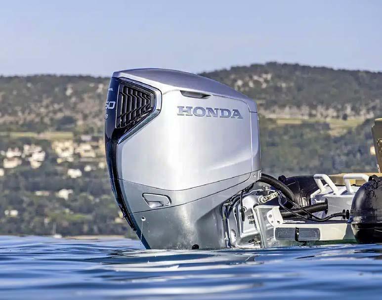 Honda’s V8 power has been unleashed, instead, at sea. “Leave them in your wake,” says the slogan for Honda’s firstever production V8, and it’s a mighty 350-horse outboard, which carries it.