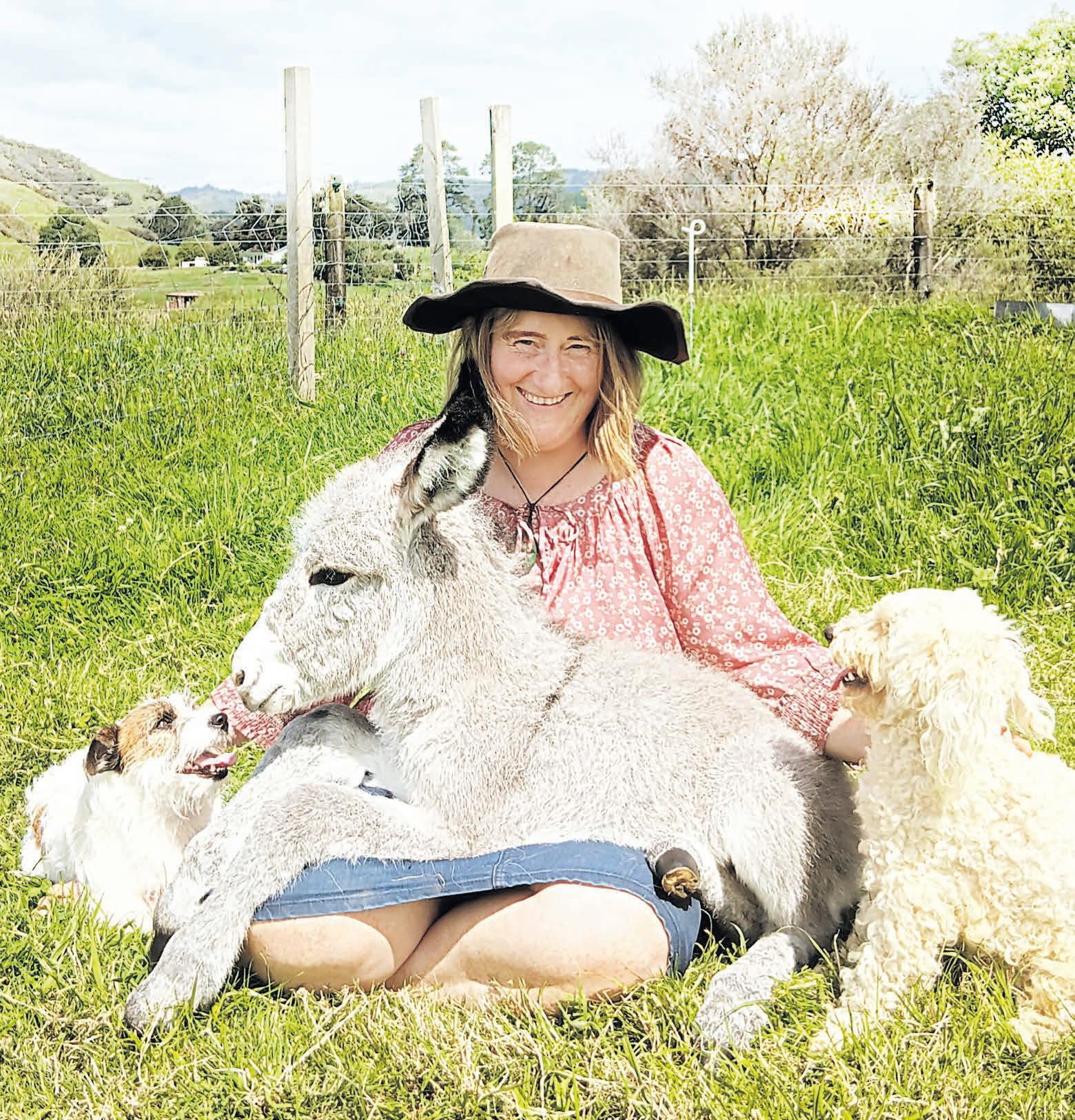 Tigerlily with one of her Ponui donkeys and a couple of canine companions