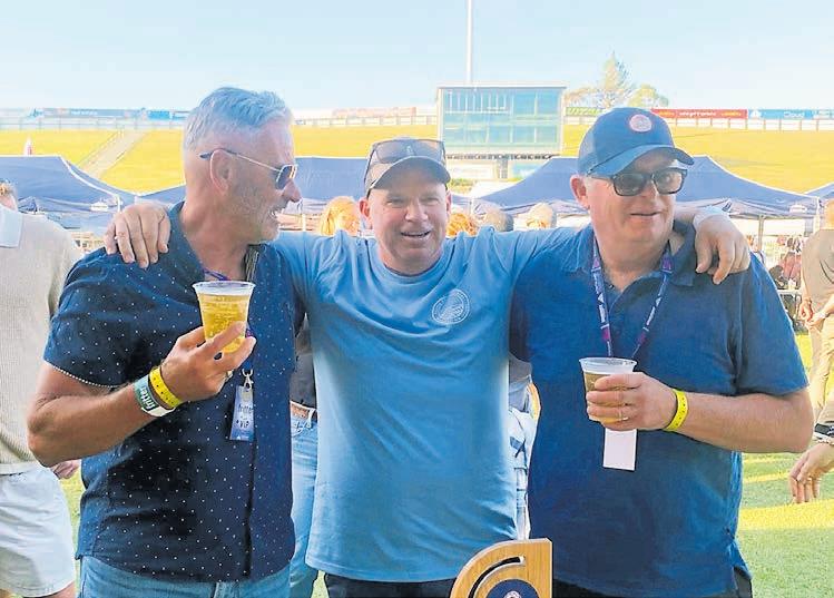 p Adam Booth celebrated the brewery’s win with Fritter Festival 2024 judges Dave Sinclair (left) and Al Brown (right)