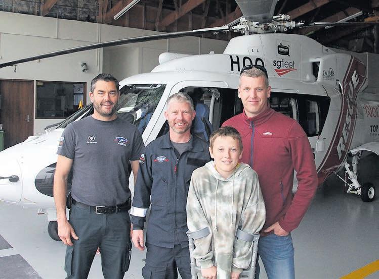 p Ryan and Kayden Hall meeting paramedic Northland Rescue Helicopter medic Nick Scott and pilot Joel Higgie who attended to Kayden