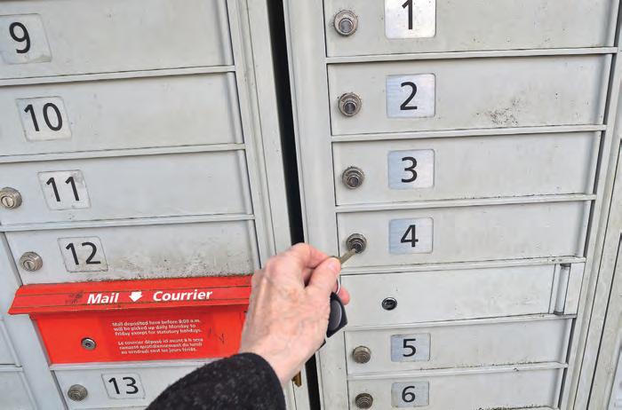 Communitymailboxesincludesecure, locked compartments formailandparcels. More than80percentofparcelsdeliveredbyCanadaPostfit intoacommunity mailbox’s individual compartmentor a dedicatedparcelcompartment.Parcels thatdon’t fit orthat requireasignatureare deliveredtothedoororheldforpickupat anearbypostoffice.