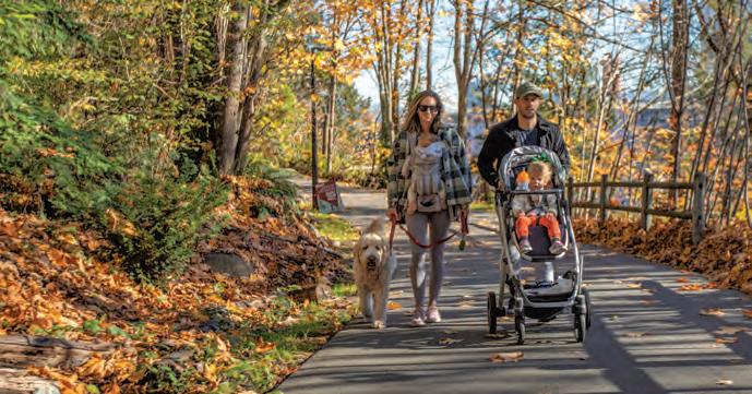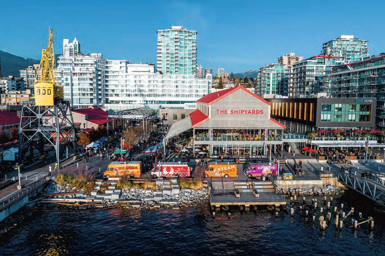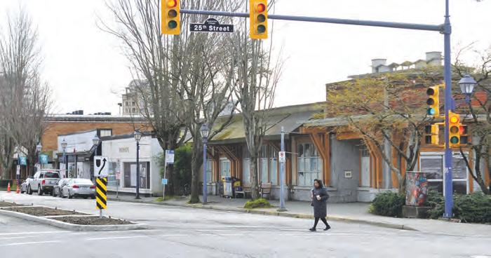 IntheimagesforthePierwelldevelopmentwrapping thestorefrontwindowsinthe2400blockof West Vancouver’sMarineDrive,friendsstroll byasoftlylit building whileawomansits on abalconygazingat thestreetscenebelow.Promotionalphrases on the windowsofPierwell’s shutteredsalescentrepromise 36“seasidehomes”settoopenin2027.