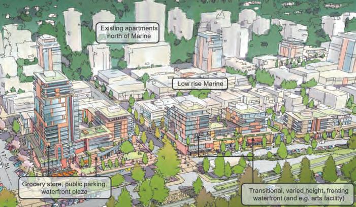 Basedonextensivecommunity feedback,theplanwouldnowprioritize low-rise(threetofourstorey)buildings alongtheMarine Drive corridor–notthe