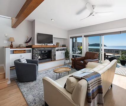 Thiscustomhomeis nestledamongst therocky bluff on theocean shore andismeticulouslycraftedwithnoexpense spared.Buyerswill appreciate thebeautiful timbers, expansive windows, vaultedceilings, open plan entertaining,custombuilt-ins, extensive exteriorliving, professional landscapingand thebreathtaking,panoramic SW oceanand island views!