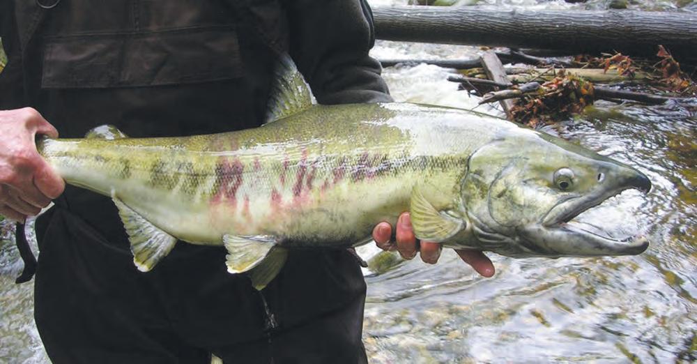 Whilethefallsurveysdonebywalking thecreeks’bankshelpsestablishabaseline of returningadultsalmon,it’s stillsomething ofaninexactscienceascohoarewilyand easilycamouflaged.