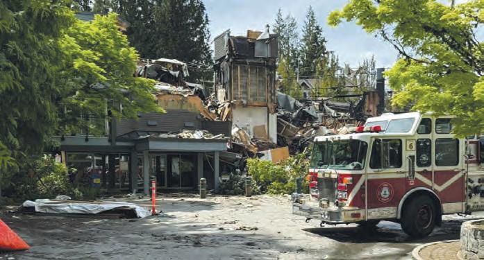 MorethanhalfoftheSilverlynnApartmentsbuildingwas reduced to rubbleand39 residentswere displacedafter a raging fire torethroughthe Lynn Valleyseniors residenceon Saturday.