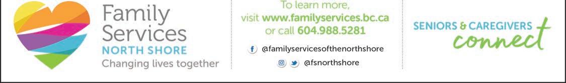 NSCR’s Seniors One Stop Navigation Center (SOS) and the North Shore News partner to bring you this informative resource directory annually. For over 50 years, NSCR, a nonprofit organization and registered charity, has been empowering individuals and families on the North Shore to access essential services and enhance wellbeing. Our Seniors One Stop (SOS) has been a trusted and long-standing program of NSCR since 1992. Through SOS, we help seniors or those supporting seniors with information and referral to community supports and resources. We can help with navigating information on subsidized housing, financial benefits, transportation, home support, help filling out online forms, legal resources, and more. Free & confidential services o ered by phone, walk-in or in-person appointment.