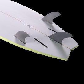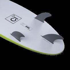 The Pro-9 comes in a 4+1 fin configuration enabling you to be creative in your setup as a quad or thruster. NSP positioned the Surf 10 fin box slightly further back, to enable a 2+1 setup. The Pro-9 comes with FTU boxes for its sidefins, making it com- patible with Futures® Fins (fins not included).