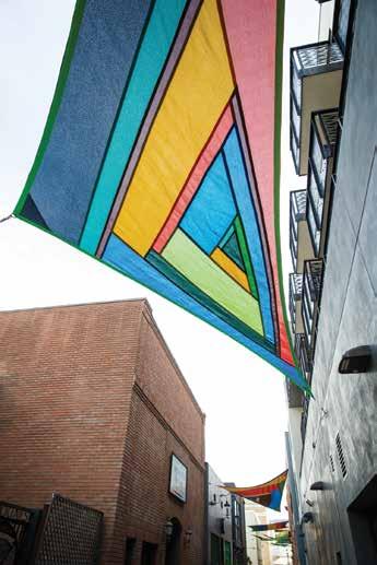 Artist Rachel B. Hayes’ fabric installations cast a colorful light over the Performing Arts Center at Cal Poly and the Garden Street Alley in San Luis Obispo. The large-scale works of art include fabric in various shapes, shades, and sizes designed to catch the sun and shift their hues with the light. Arts Editor Glen Starkey speaks with Hayes about her work and what inspired it [26].