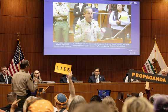 PAINFUL TRUTHS Protesters at the Jan. 27 TRUTH Act Forum pushed back on the SLO County Sheriff’s Office, questioning its interactions with ICE and its official statements about a Dec. 14 incident that took place in the jail.