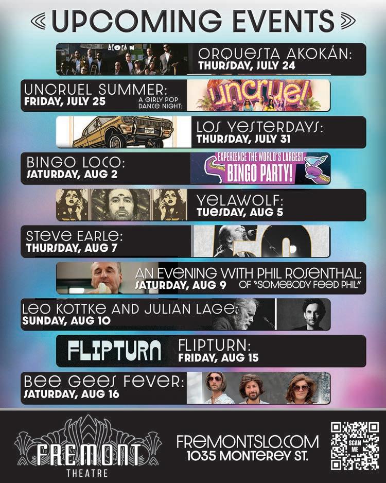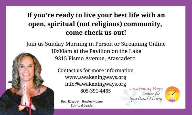 The San Luis Obispo City Council invites all interested persons to attend a meeting on Tuesday, August 19, 2025, at 5:30 p.m. in the Council Chambers at City Hall, 990 Palm Street, San Luis Obispo. Meetings may be viewed remotely on Government Access Channel 20 or streamed live from the City’s YouTube channel at www.youtube. com/CityofSanLuisObispo. Public comment, prior to the start of the meeting, may be submitted in writing via U.S. Mail delivered to the City Clerk’s office at 990 Palm Street, San Luis Obispo, CA 93401 or by email to emailcouncil@ slocity.org.