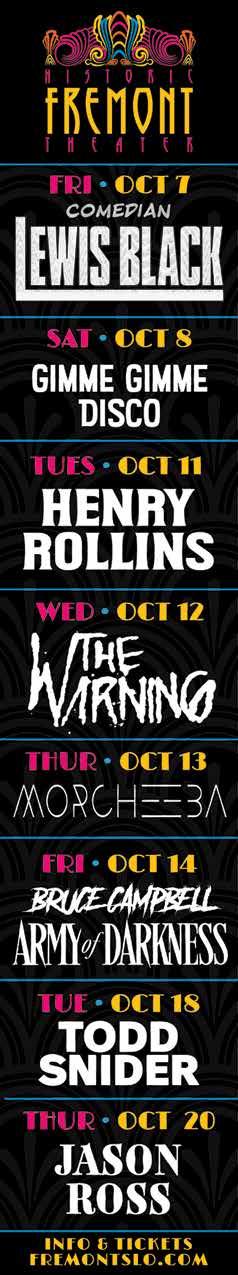 We cannot assume responsibility for unsolicited submissions. All letters received become the property of the publishers. Opinions expressed in byline material are not necessarily those of New Times New Times is available on microfilm at the SLO City-County Library, and through Proquest Company, 789 E Eisenhower Pkwy., Ann Arbor, MI 48106, as part of the Alternative Press Project. Subscriptions to New Times are $156 per year.