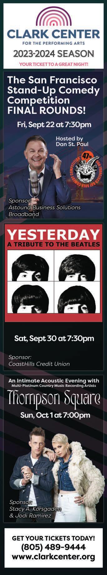 COMPLIMENTARY NEW PATIENT PACKAGE SEPTEMBER SPECIAL WWW.BAUERDENTALCENTER.COM Comprehensive Evaluation Full Mouth Series of 2D XRays 3D Intraoral Scan (Digital Impression) Intraoral Cavity Detector Microorganism Collection Panoramic Image TMJ Evaluation Sinus Health Screening *MUST BRING THIS AD TO FIRST APPOINTMENT FOR ELIGIBILITY* 850 FAIR OAKS AVE SUITE 200, ARROYO GRANDE 805-481-6617 CALL NOW TO RESERVE YOUR APPOINTMENT Clare Malone Prichard DRE #02068962 Licensed Architect Leonard Milstein, Broker (650) 656-0472 clare@coastaldoorway.com Enjoy stunning views from Morro Rock to Hollister Peak in this mid-century style split-level home with soaring redwood ceilings. Meticulously updated in 2022 with remodeled kitchen and bathrooms. Spacious 2 car garage with electric car charger and separate private space for art studio. 1449 Santa Maria Avenue, Los Osos 3 Bedroom, 2 1/2 Bath, 2,478 sq. ft., 6,250 sq. ft. lot, Offered at $1,169,000. Margaret O’Hara DRE #01099075 (805) 550-7075 moharagordon@gmail.com SANTAMARIA.ABBEYCARPET.COM 2051 S. BROADWAY • SANTA MARIA WESTERN VILLAGE SHOPPING CENTER 805-347-1121 Car pet & Floor