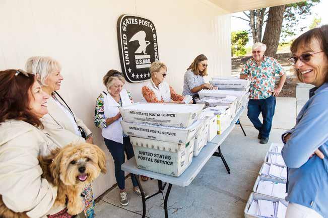 WRITE FOR THE LEFT A group of SLO County Democratic Party voters enjoys a laugh the U.S. Post Office in SLO on the morning of Oct. 15 while stacking 35,000 letters to “occasional voters” in key swing states into bins for mailing.