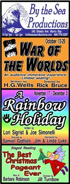 Features live music from multiple acts, a silent auction, great Mexican and Mediterranean food, wine from local cellars, and freshly tapped beer from Firestone. Oct. 28 , 12-9 p.m. Contact for details. 805-769-8458. EsteroBayRadio. org. Morro Bay Community Center, 1001 Kennedy Way, Morro Bay.