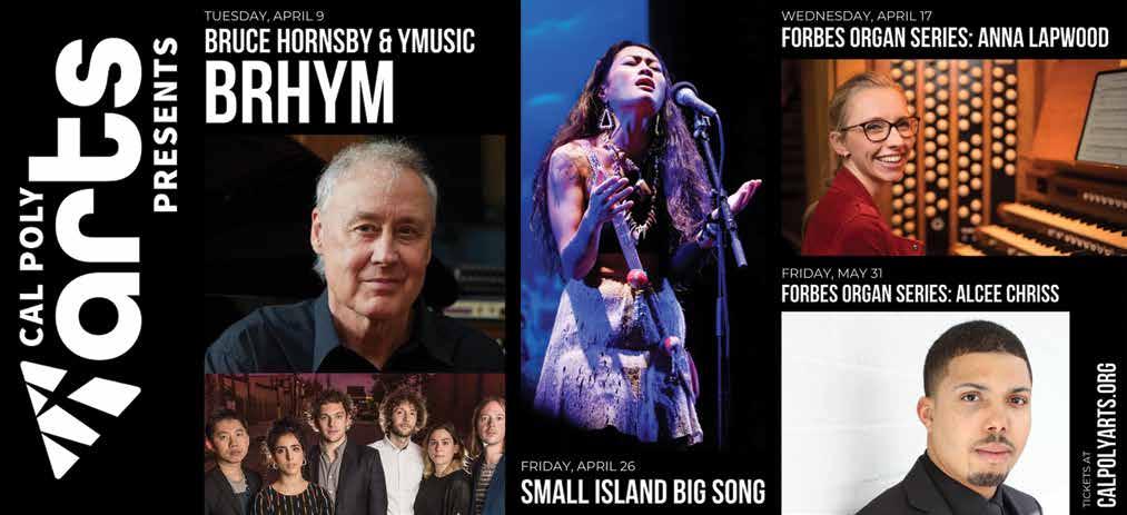 AT PLAY SONG CONTEST Enjoy “the best of the best.” Ten contestants play two original songs each, and three judges award prizes, including a grand prize of $1,000. The contestants are Karyn Ann, Jean Mann, Chris Mariscal, Ted Nunes, Wildflower, Paddy Marsh, Cate Armstrong, Bev Praver, Miss Leo, and Jayden Secor. April 14 , 2-5 p.m. $28. 805-204-6821. songwritersatplay. com/events. Cambria Center for the Arts Theatre, 1350 Main St., Cambria.