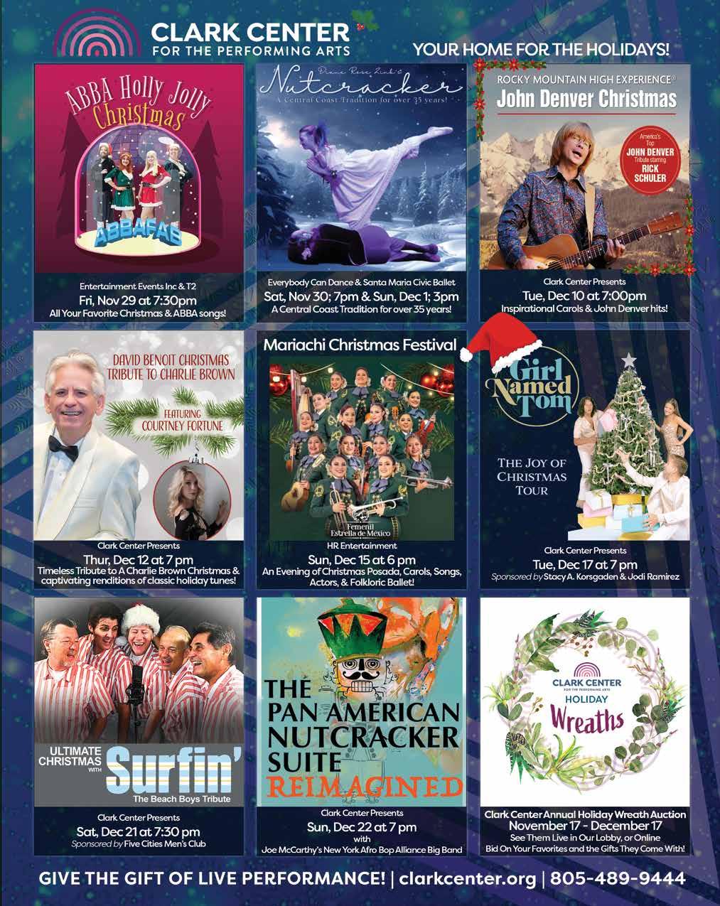 HOLIDAY MARKET Discover local artists, quality specialty gifts, handcrafted delights, and more. Don’t miss the chance to find that perfect gift. Nov. 24 10 a.m.-2 p.m. Free. (805) 595-7600. avilabayclub.com. Avila Bay Athletic Club and Spa, 6699 Bay Laurel Place, Avila Beach.