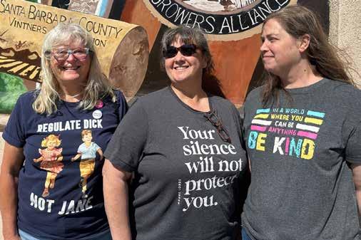 LOCAL LEADERS: Vicky McClain (left), Tracy Van Wie (center), and Beth Cook (right) are members of Indivisible Lompoc who use the arts to take a political stand. Their chapter is part of the national movement, Indivisible.