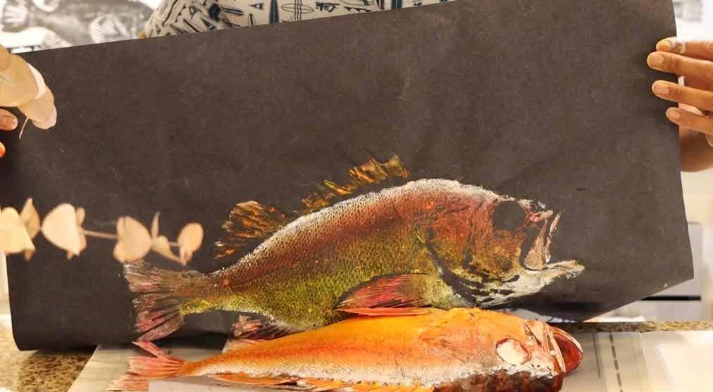holes in the hollow pods and stringing them together, Lima created a skirt for a sculpture.