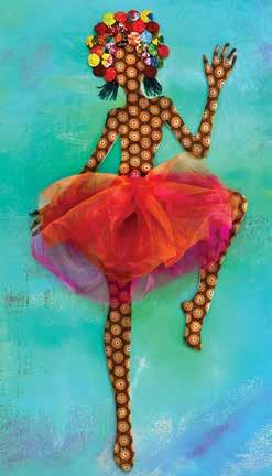 3D: Forró do Fuxico is inspired by a Brazilian dance. Artist Paulo Lima described the dancer as floating in the air with a big skirt. One by one, he sewed the small rosettes of her headpiece.