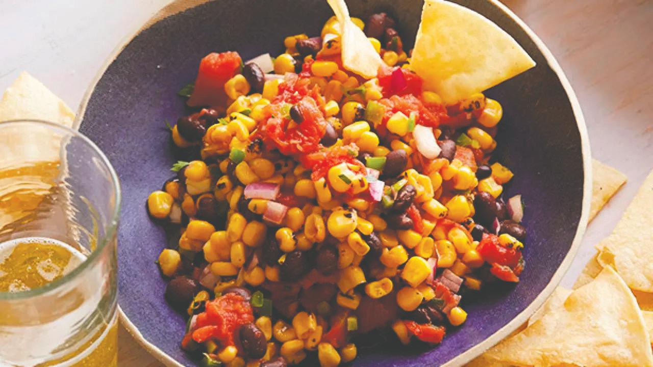 2) In a small bowl combine canola oil, chili powder, and salt and pepper, to taste. Brush corn with oil mixture. Place on hot grill and cook 10 minutes, turning frequently. Remove to a cutting board and let cool for a few minutes. When cool enough to handle, cut kernels from the cob.
